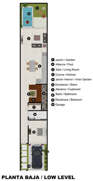 IXCHEL cuenta con todo lo que necesite para vivir con la mayor comodidad incorporando una construcción nueva con 3 habitaciones en 2 plantas, 3 baños completos, sala, comedor y cocina de concepto abierto, cubo de escalera a doble altura con patio interior, así como el encanto de una piscina que se integra mágicamente a la zona de estar.